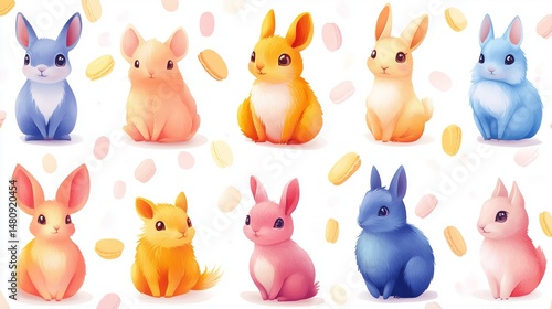 Naklejka premium Minimal Geometric Animal Vector Art: Macaron Gradient Silhouettes for Brand...