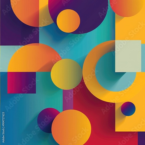 © Khritthithat, Obraz premium Minimal geometric background with bright colorful squares and circular elements, vector illustration for book illustrations, Clean and Vibrant