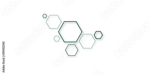 Fototapeta premium Minimal Green Hexagon Network Pattern On White Background With Modern...