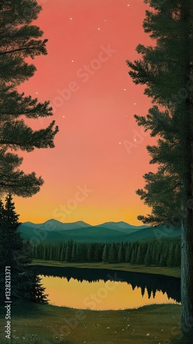 © Rawpixel.com, Fototapeta premium Minimal hometown and meadow at night landscape wallpaper scenery nature.
