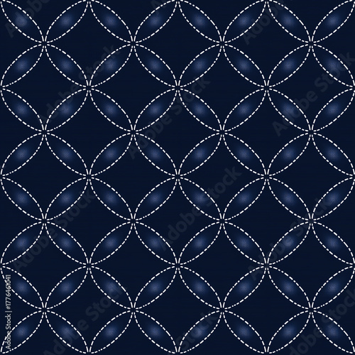 Fototapeta premium Minimal japanese sashiko stitching pattern seamless design textile art contemporary style close-up view elegant aesthetics