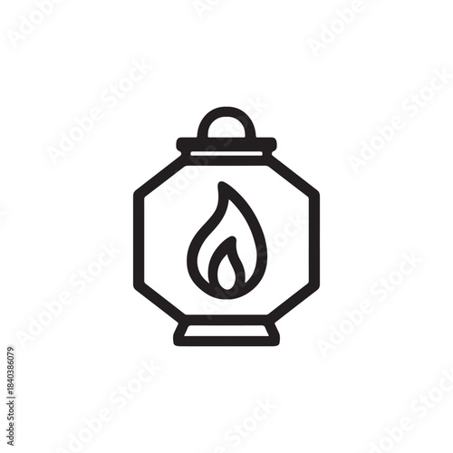 Obraz premium Minimal Lantern Silhouette Icon with Flame Inside on White Background