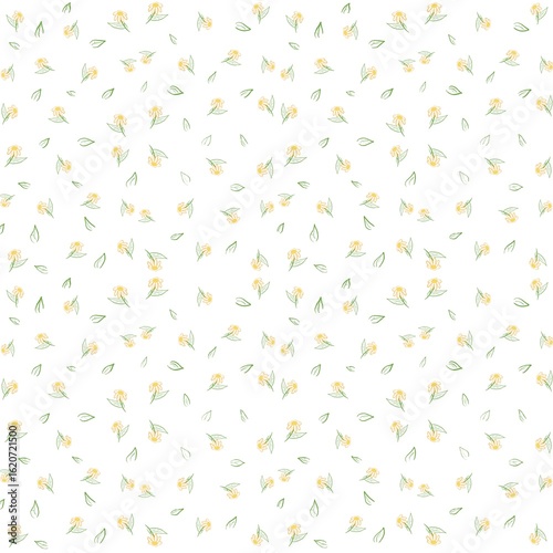 © Kamolthip, Obraz premium Minimal Leaf Sprig Seamless Pattern – White Background