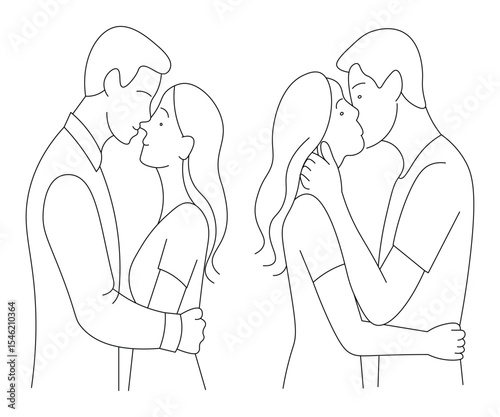 Fototapeta premium Minimal Line Art of Couple Kissing and Embracing. Romantic Couple Poses in...