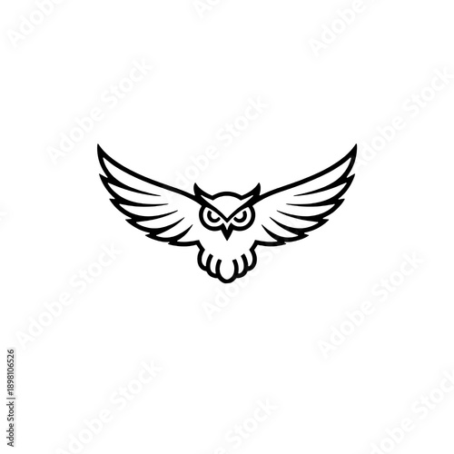 © jano, Fototapeta premium Minimal Line Art Owl Logo with Spread Wings Symbolizing Wisdom, Knowledge, Intelligence and Night Vision in Modern Outline Style on White Background