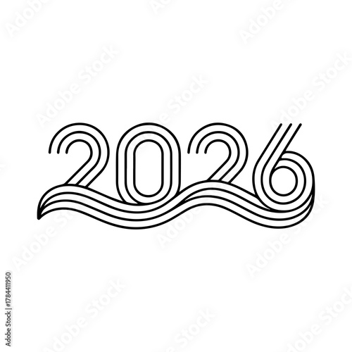 Obraz premium Minimal Line Art 2026 Typography with Wave Design
