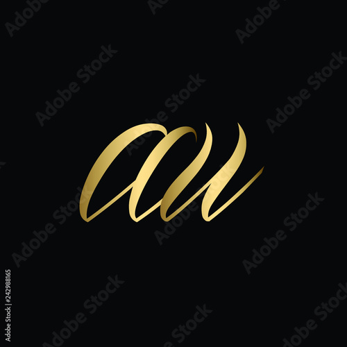 Obraz premium Minimal Luxury Cursive Letter AU Initial Based Golden and Black color Logo...