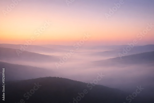 © Enti, Fototapeta premium Minimal Misty Horizon with Soft Sunrise Gradient Sky