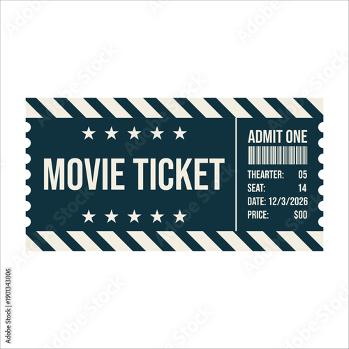 Obraz premium Minimal Movie Ticket Layout, Plain Movie Ticket Design, Simple Event Cinema Ticket, Basic Cinema Ticket