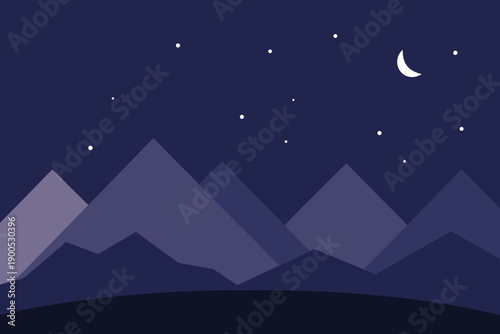 Obraz premium Minimal Night Mountain Silhouette Vector