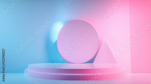 Obraz premium Minimal pastel podium scene with soft lighting, abstract shapes, and modern aesthetic for product display