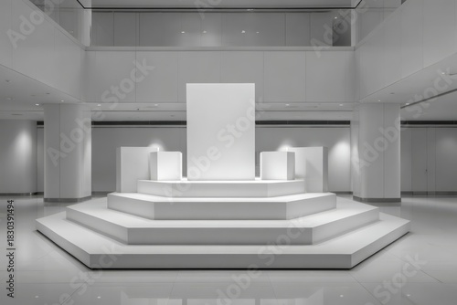 © grey, Fototapeta premium Minimal pastel podium with soft shadows in a clean photo studio setup.