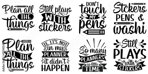 Fototapeta premium Minimal Planner Trendy Retro Style Illustration, Typographic Emblems Set Vector Illustration for Icon, Book Cover, Brochure