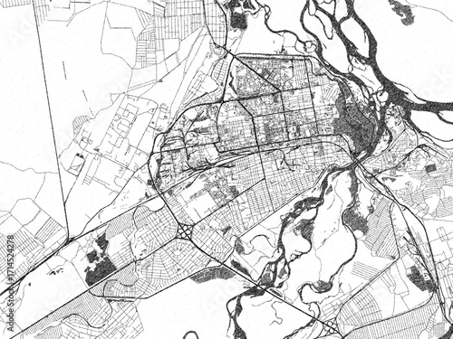 Naklejka premium Minimal poster-style map of Abakan, Russian Federation, hand-drawn in monochrome.
