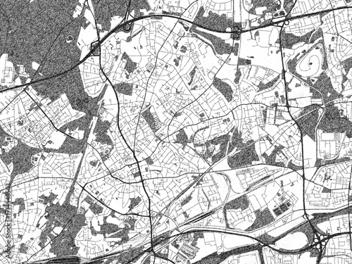 © W&S Stock, Naklejka premium Minimal poster-style map of Bottrop, Germany, hand-drawn in monochrome.