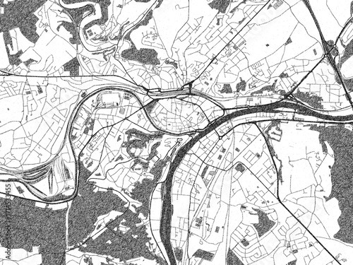 © W&S Stock, Naklejka premium Minimal poster-style map of Namur, Belgium, hand-drawn in monochrome.