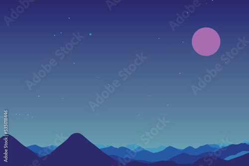 Fototapeta premium Minimal sky vector landscape with moon and mountains.