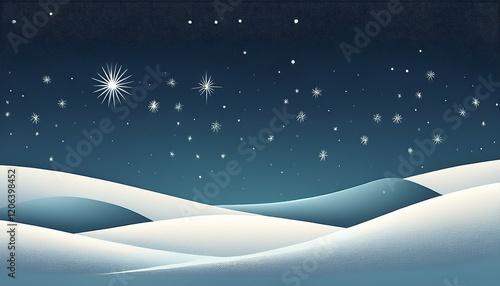 © Gianpietro, Fototapeta premium minimal snow landscape with hills and stars at night in a simple style