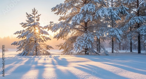 Obraz premium Minimal Snowy Landscape with Pine Trees