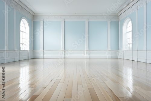 Obraz premium Minimal style interior light blue empty room modern white, white wood floor...
