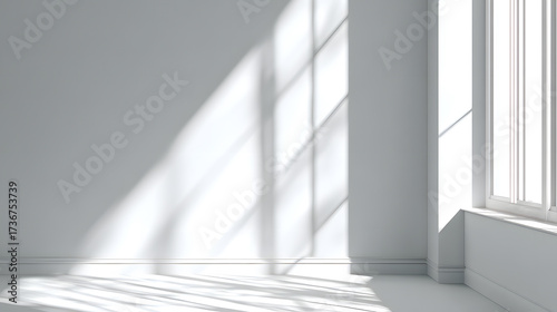 Obraz premium Minimal Sunlight Window Shadows on White Interior Wall