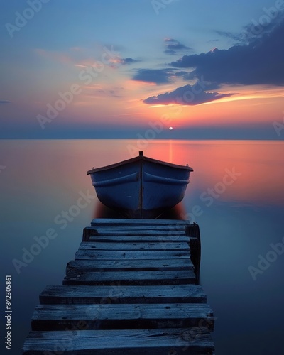 © Natalia, Obraz premium Minimal sunrise, horizon line, wide angle, warm hues for a peaceful background