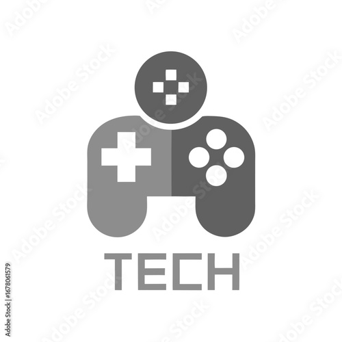 © Background, Fototapeta premium Minimal Tech Controller Icon with Grid Shadow and Grayscale Palette