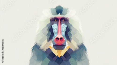 © Sarunya, Naklejka premium Minimal vector baboon, cute stylized face, soft color blocks, white background