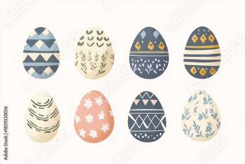 © Ilja, Fototapeta premium Minimal Vector Easter Seamless Pattern Featuring Pastel Textured Organic Eggs and Spring Elements