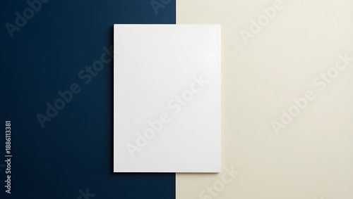 Fototapeta premium Minimal Vertical Poster Mockup on Split Blue and Beige Background With Copy Space