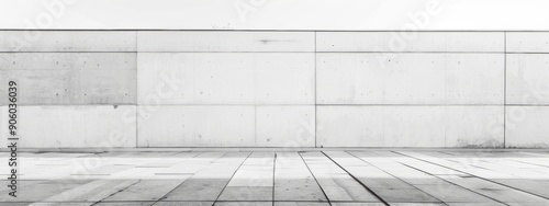 © Usman, Obraz premium Minimal wall , empty, solid wall, urban minimalism, side view, linear perspective composition, white wall,
