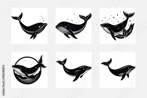 Fototapeta premium Minimal whale silhouette art set on white background elegant oceanic wall decor