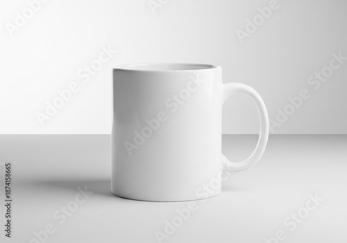 Obraz premium Minimal white ceramic mug mockup with soft gradient studio background lighting
