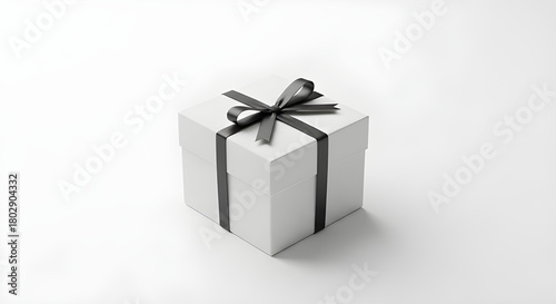 © Yasabosant, Fototapeta premium Minimal white gift box with thin black ribbon.