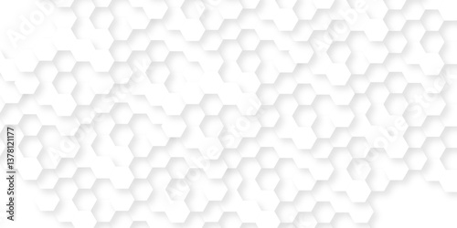 Naklejka premium Minimal white hexagonal hexagon modern technology creative emboss light honeycomb polygonal web. abstract geometric science and mosaic tile with template texture background.