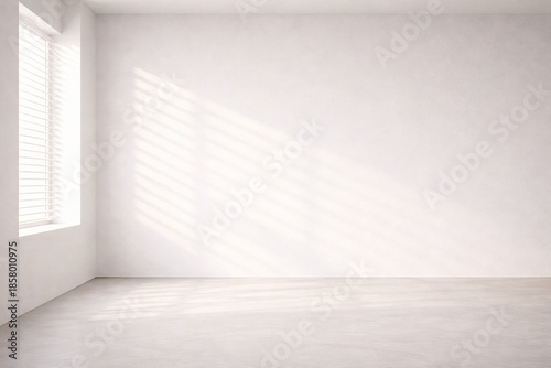 Fototapeta premium Minimal White Interior Wall with Soft Blinds Shadow and Window Light