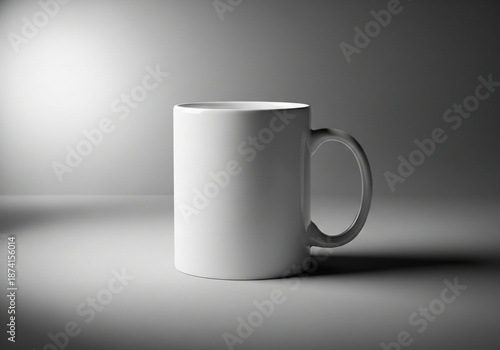 Obraz premium Minimal white mug mockup with soft vignette background effect