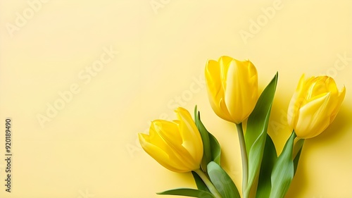 © Sajjad, Obraz premium Minimal yellow spring background with yellow tulips