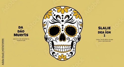 © robinwillians, Obraz premium Minimalismo Vibrante: Caveira de Açúcar Mexicana para Celebrar o Día de Muertos