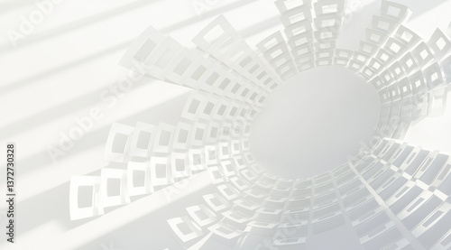 Obraz premium Minimalist Abstract 3D Render of White Digital Audio Spectrum with Circular Pattern and Light Shadows for Modern Background Concepts