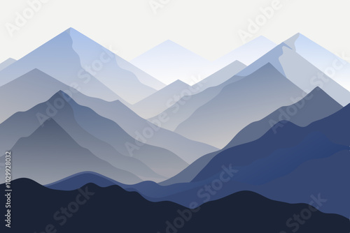 © Imran, Naklejka premium Minimalist Abstract Mountain Landscape with Soft Gradients on White Background
