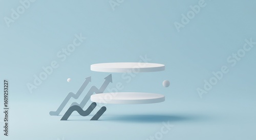 Fototapeta premium Minimalist abstract podium stage with upward arrows symbolizing business growth and financial progress concept.