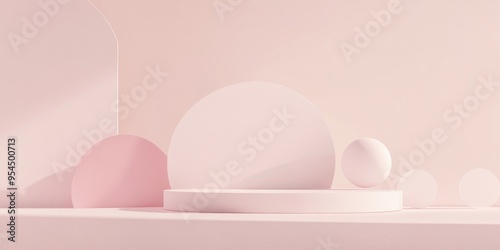 Fototapeta premium Minimalist abstract scene featuring geometric shapes against a soft pink...