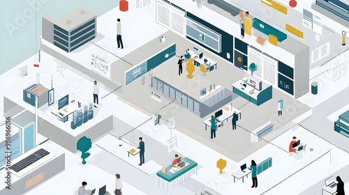 © pkproject, Obraz premium Minimalist and Functional Office Interior with Various Business Elements
