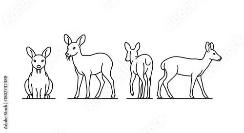 Naklejka premium Minimalist animal silhouettes in line art style: deer perspectives