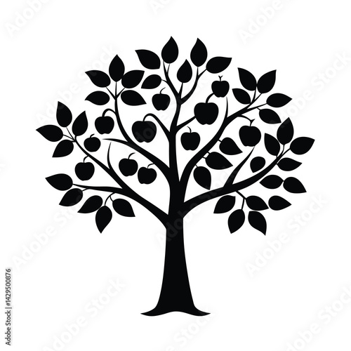 Obraz premium Minimalist Apple Tree Silhouette Vector Icon