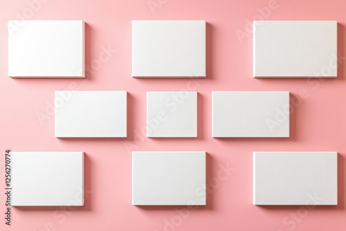 Fototapeta premium Minimalist arrangement of blank canvases on soft pastel pink background