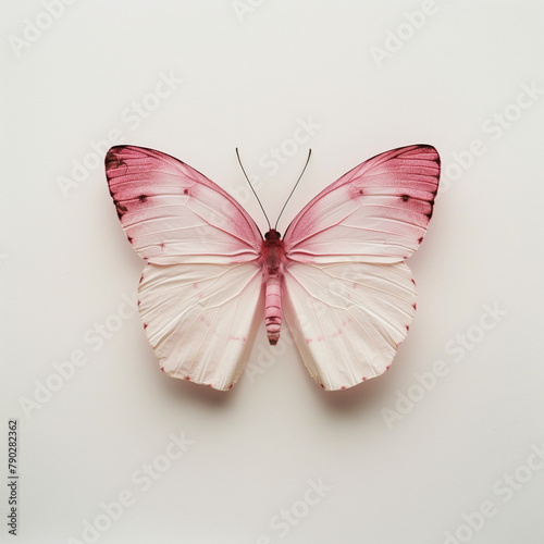 © Nii_Anna, Fototapeta premium Minimalist art, single pink butterfly against a plain white background, focus on simplicity and the beauty of its form and color