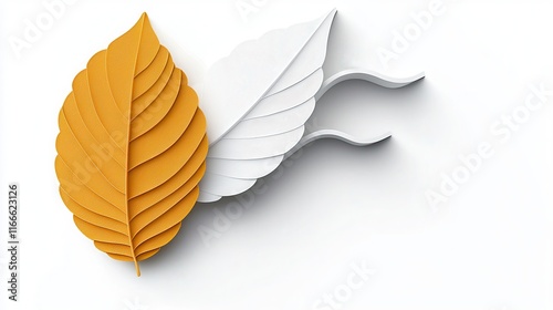 © Kwang.Pat, Obraz premium Minimalist autumn leaf icon with curved edges on a bright white background