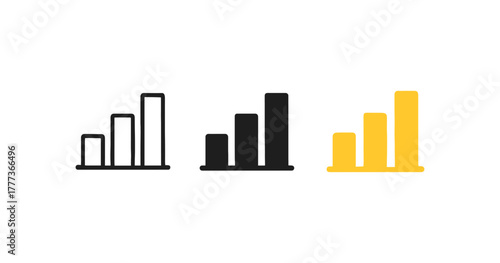 © 123levit, Obraz premium Minimalist bar chart set: black and yellow growth infographic icons